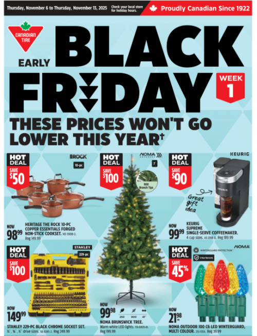 Week one of Early Black Friday deals begins tomorrow at Canada Tire, and there are hot deals that are valid until November the 13th. These prices are guaranteed not to go lower this year, and here are some of the savings available: