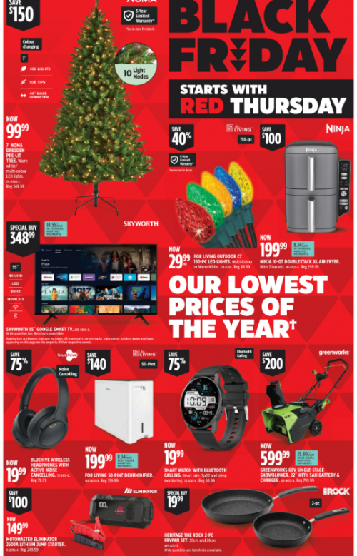 The Canadian Tire Black Friday flyer is now live, and the lowest prices of the year begin with Red Thursday. You can click the link below to find the complete flyer, and here are some of the Black Friday deals that start November the 27th at Canadian Tire: