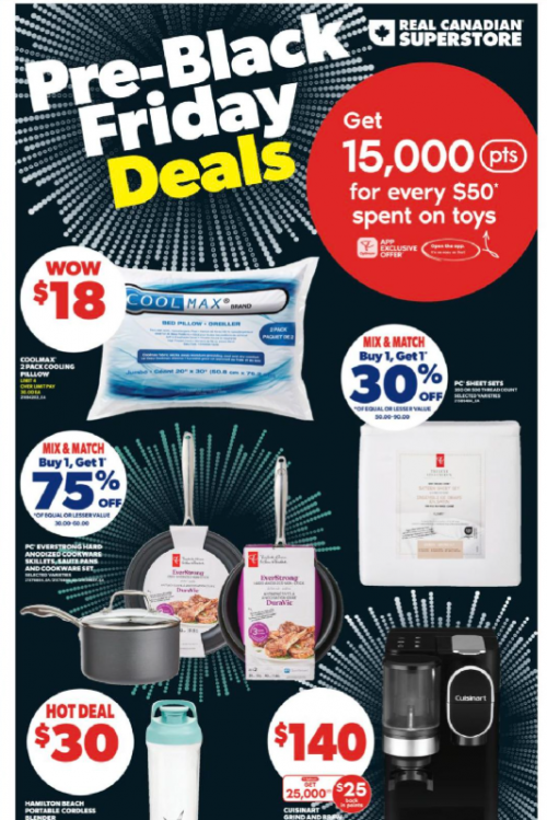 This week Real Canadian Superstore Ontario has a new set of Black Friday deals, including 15,000 PC Optimum points for every $50 that you spend on toys. There are several deals on toys as well, like 20% off select lines of LEGO. Here are some of the Black Friday deals that start tomorrow at Superstore: