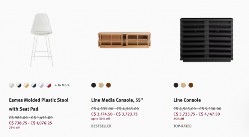 Save 25% on everything at Herman Miller Canada during their Black Friday Sale. You can also get free delivery on orders that are $1500 or more when you use the promo code FREESHIPPING. There are also sale items that are up to 40% off, and Nelson lighting is currently 30% off. Here are some of the markdowns up to 40% off: