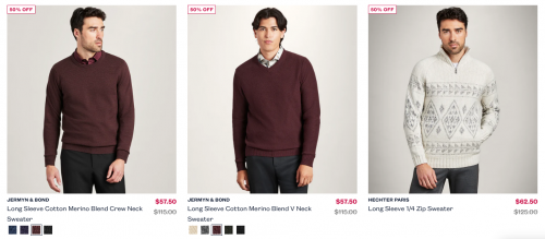 - Hechter Paris Long Sleeve 1/4 Zip Sweater $62.50 (reg. $125, save 50%)