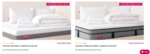 - The Endy Hybrid Mattress + Everyday Sleep Set from $1,095 (reg. $1,470)