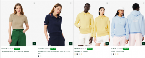 Click here to save up to 50% off at Lacoste Canada.