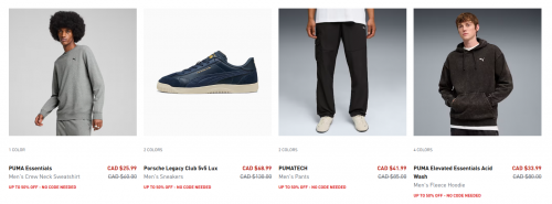 The Black Friday Sale is on now at Puma Canada, and select styles are now up to 50% off. There is no promotion code required for this sale, and the prices shown include the discount. The current sale prices are valid until the end of today, and shipping is free on orders of $75 or more, with free returns by mail. Here are some of the savings up to 50% off: