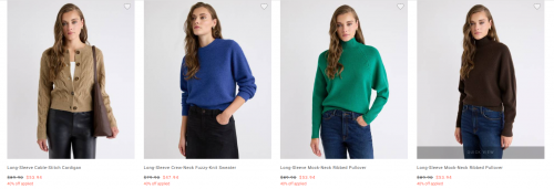 - Long Sleeve Crew Neck Fuzzy Knit Sweater $47.94 (reg. $79.90, save 40%)