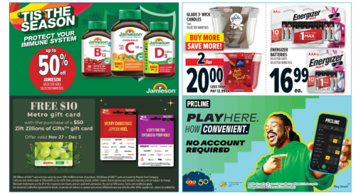 This week at Metro Ontario, get a $10 gift card when you purchase a $50 Zift Zillions of Gifts gift card. This offer is valid from November the 27th to December the 3rd. Here are some of the other deals in the Metro flyer for this week:
